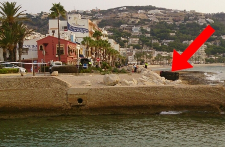Strandpromenaden Avenida Marina Española i Jávea er omlagt til en gågade ved det sted, hvor floden Río Gorgos munder ud i Middelhavet.