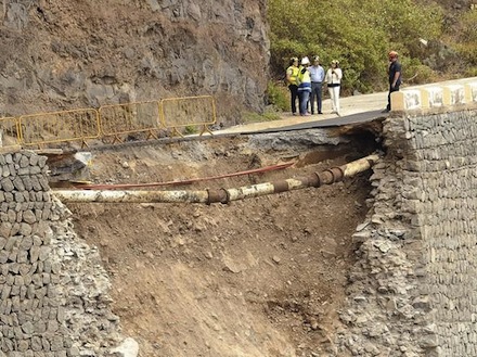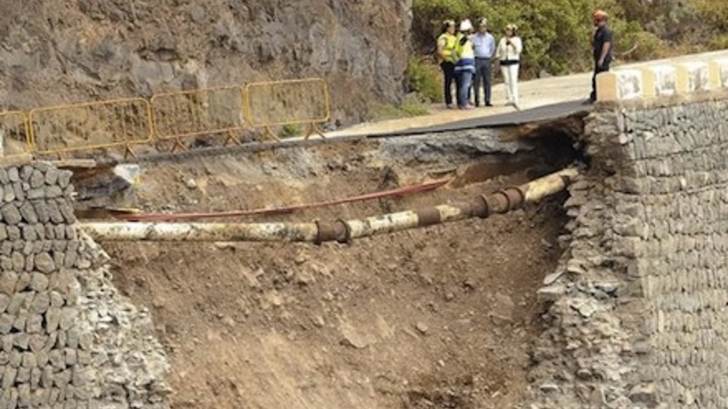 Der opstod kort efter klokken 18 tirsdag et kæmpe krater i den ene side af landevej TF-445, der forbinder Buenavista del Norte med Punta de Teno.