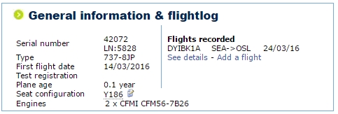 Måske vil du også gerne vide, hvor gammelt flyet er, hvem der ejer det og, om det har fløjet for et andet selskab tidligere?