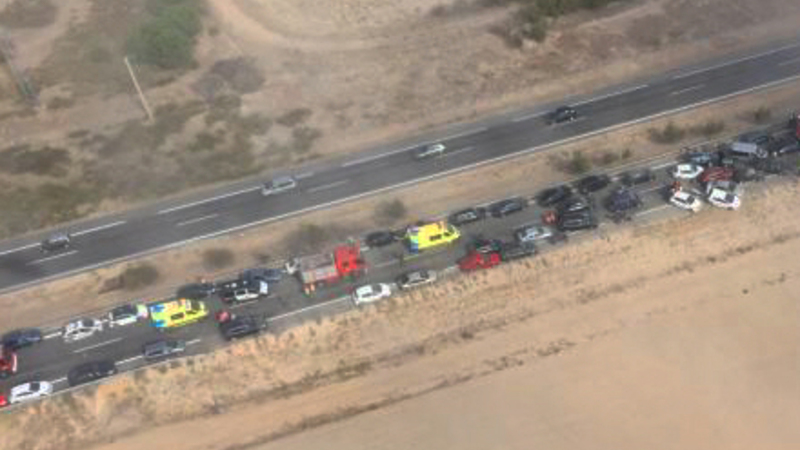 TRAFIK: Hele 40 køretøjer var involveret i et sammenstød, der lukkede motorvej i to timer og kvæstede 16. I alt ni mennesker er døde på vejene denne weekend.