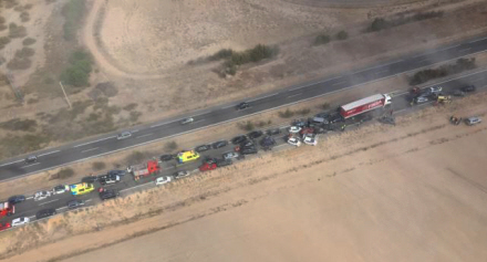 Masse-kollisionen skete klokken 15:26 og var tilsyneladende forårsaget af ekstremt ringe sigtbarhed på grund af stærk vind, der havde hvirvlet sand op i luften.