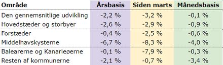 På landsbasis ver der i oktober tale om et fald på 2,2 procent på årsbasis og 3,2 procent siden marts.
