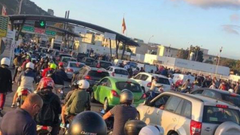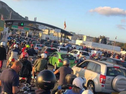 Det skyldtes spansk Policía Nacional, der gennemførte grundig ID-kontrol på alle, der skulle ind på Gibraltar, og heraf var mange turister eller folk, der arbejder på klippen og bor i Spanien.
