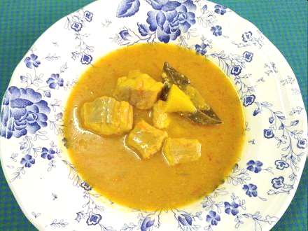 Denne småplettede rødhaj-suppe meget typisk for Malaga. Det kaldes "caldito", i diminutiv, fordi den normalt serveres i små glas eller skåle, da den er meget stærk i smagen og nogle steder ret krydret. Jeg har kun tilføjet lidt chili, men hvis du er vild med krydrede retter så tilføj mere - alt efter din smag.