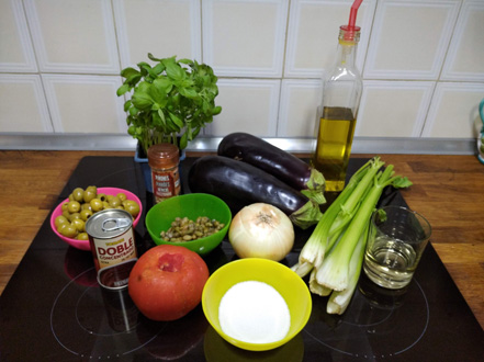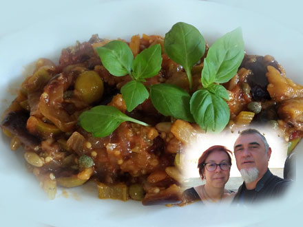 Vi opdagede denne opskrift, da vi rejste på ferie til Sicilien. Det er en sød/sur ratatouille, der normalt serveres både varm eller kold som aperitif eller som garniture.