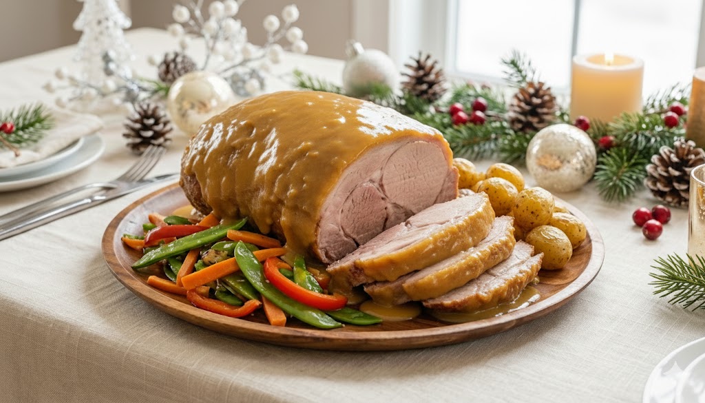 Cerdo asado a la mostaza con patatas