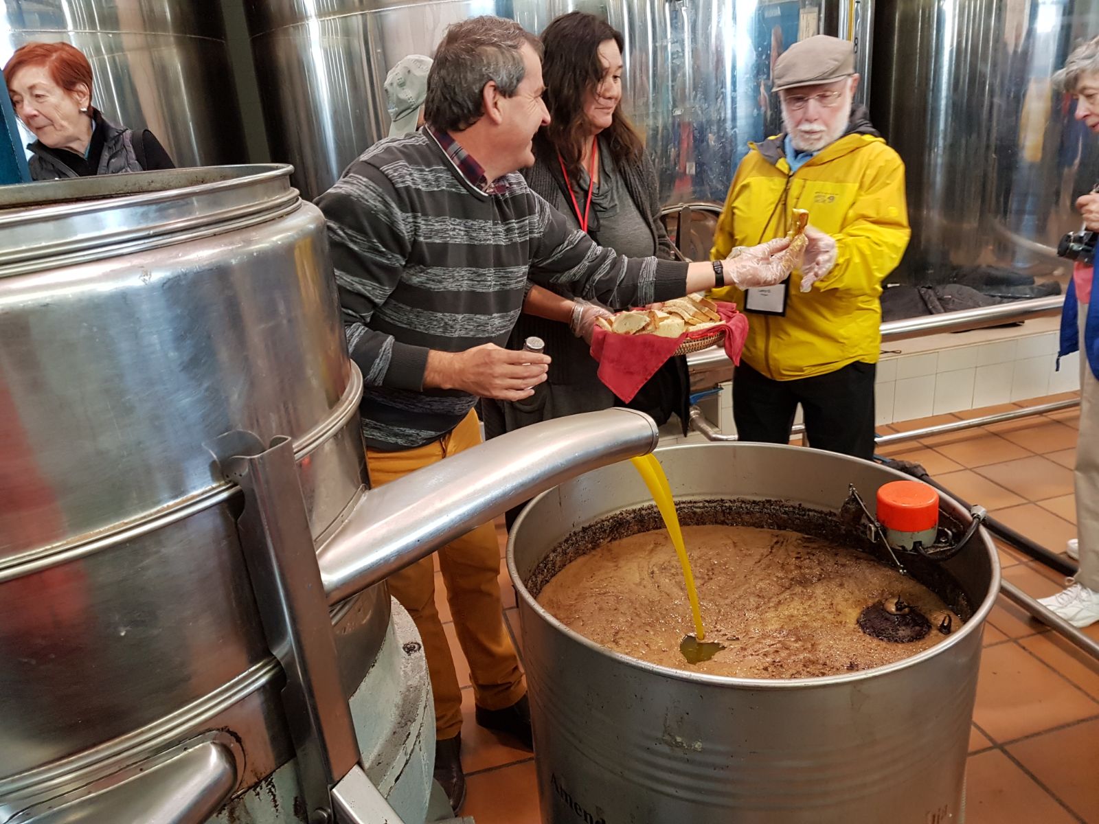 Besøget sluttes af med smagsprøver. Vi spise friskbagt brød fra bageren i Colmenar, og dypper det i olie.