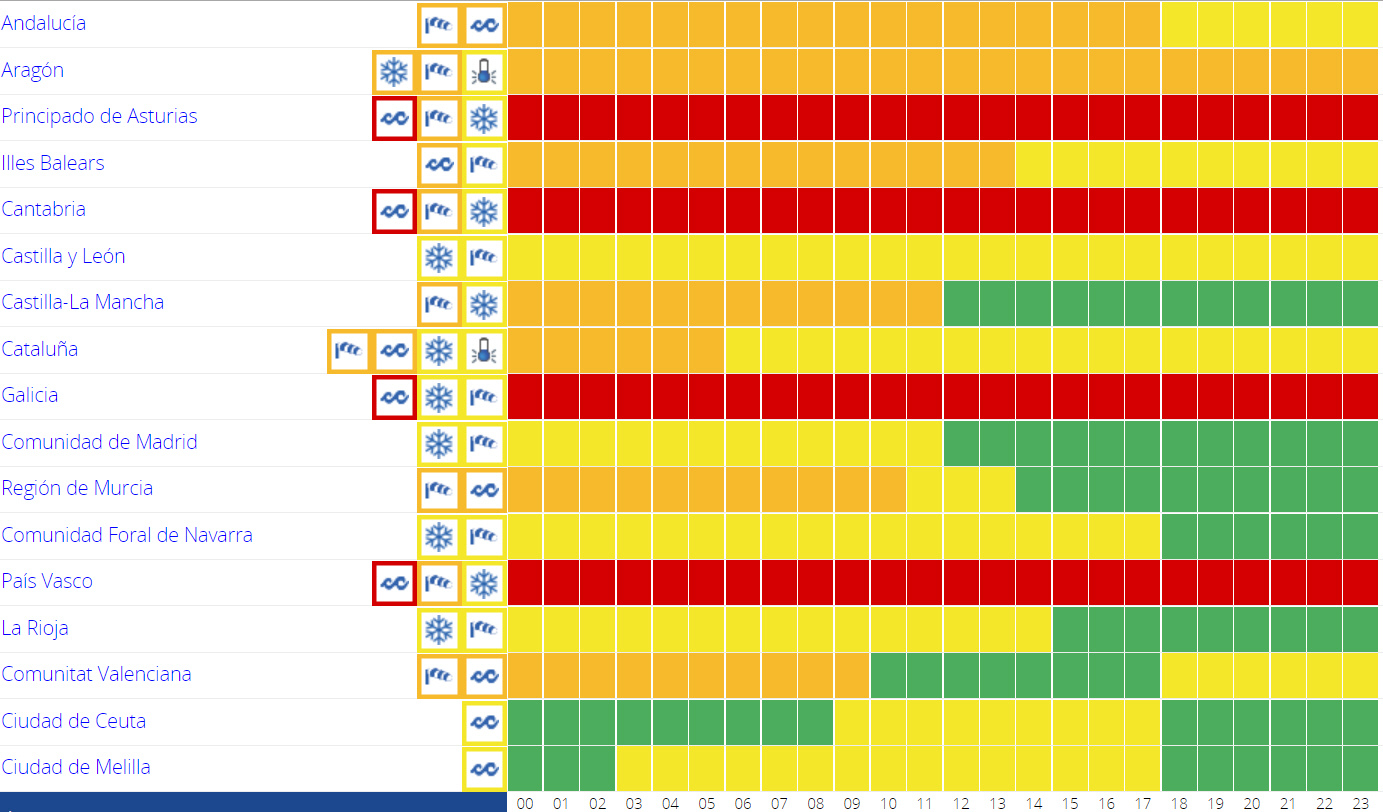 Faktisk er hele landet bortset fra Extremadura og De Kanariske Øer ekstra meget oppe på dupperne i dag: