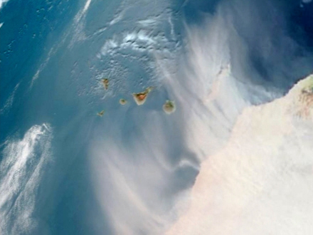 Sattelitbilledet herover er af Kanarieøerne og Afrika i går og viser tydeligt "sandblæsningen".