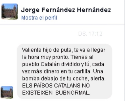 “Brave skiderik, din tid kommer snart. Du har delt det catalanske folk og for hver gang fået flere og flere penge i din pung. Jeg advarer mod en bombe under din bil. Befolkningen i Catalonien er ikke underbegavede.”