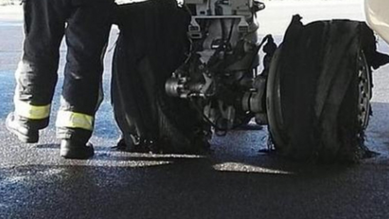 De Boeing-maskine ikke er det letteste i erden, måtte landingsbanen lukkes, mens mekanikerne måtte skifte dæk på flyet.