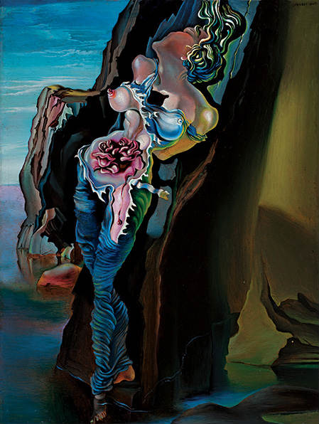 "Maison pour érotomane (ca. 1932) stammer også fra Dalís surrealistiske perioder og viser et catalansk landskab, hvor klipperne forandrer sig til et fantastisk, drømmelignende billede, domineret af to figurer”. Dette billede kan du se øverst i denne artikel.