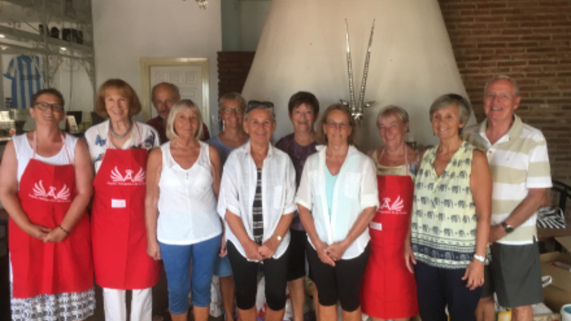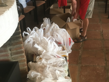 Ét af de steder hvor frivillige samler ind, køber mad ind og pakker i poser, er i Club Danés i Mijas
