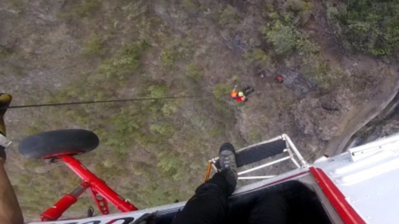 Men de kunne også hurtigt konstatere, at de ikke selv ville være i stand til at få hende fragtet sikkert ud, så helikopteren blev tilkaldt.