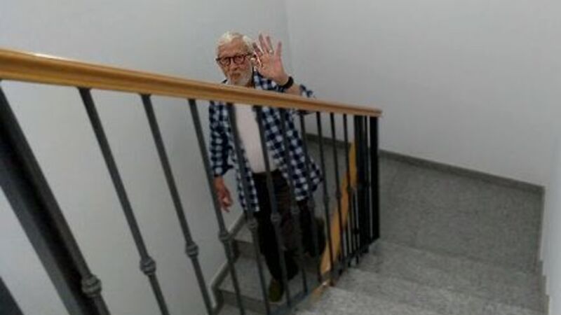 LIVET I HJEMMET: Ebbe Krydsmager vinker farvel til Dorrit på vej til sin daglige motionstur.