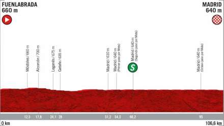 Den 21. og sidste etape er flad som en pandekage og velegnet til den traditionelle paradekørsel med hilsner og skåleri i Cava. Først når man kommer til Madrid centrum går jagten ind på at vinde den sidste etapesejr.