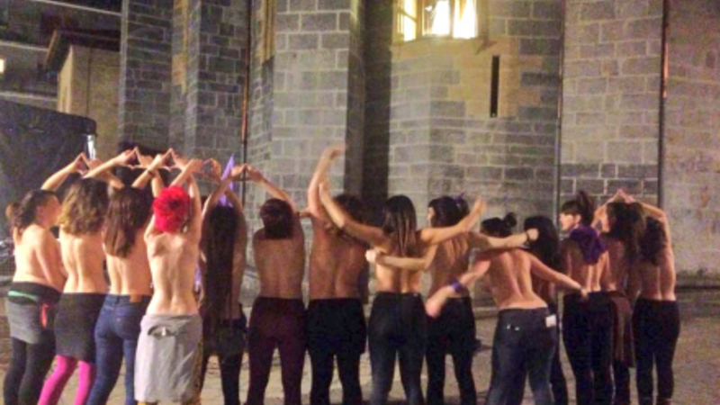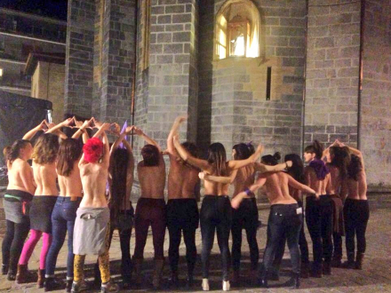 SAMFUND: Vrede, topløse kvinder stillede sig i går op uden for katedralen i nordspansk kystby.