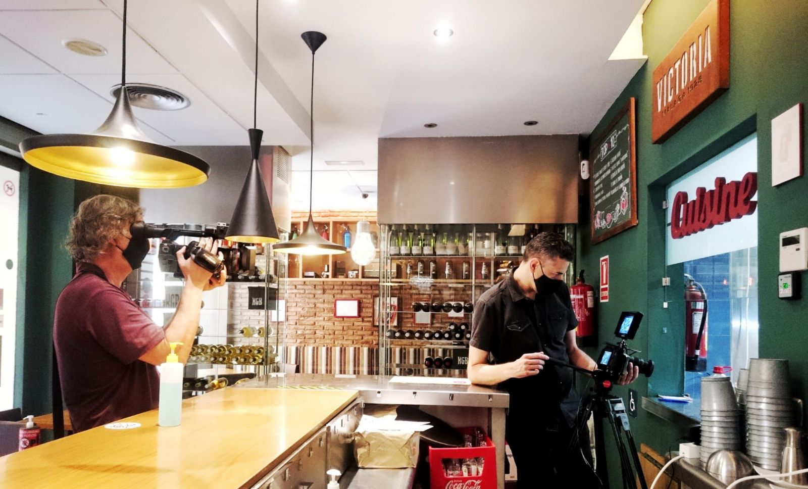 Canal Sur optager, at Jorge optager på restauranten KGB i Málaga