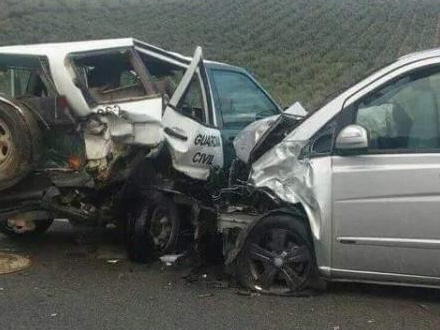 To betjente fra Guardia Civil i Málaga blev kvæstet i en trafikulykke onsdag, da deres køretøj blev torpederet af en anden bil.