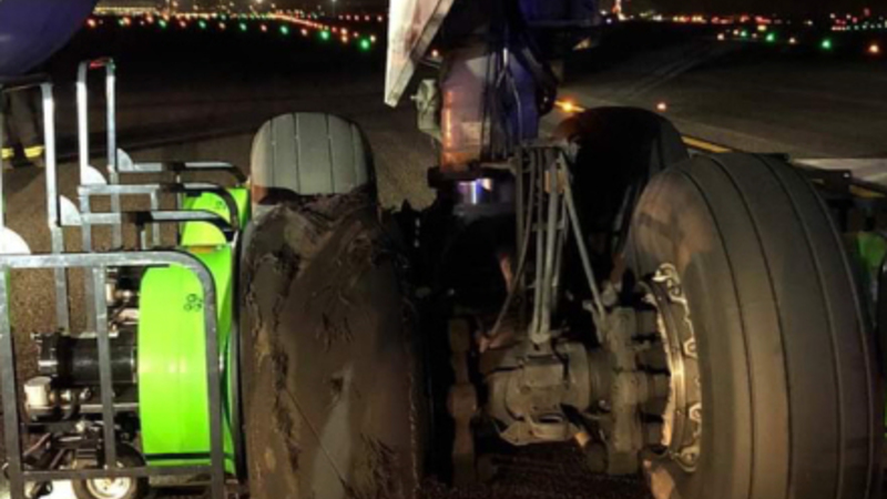 Et jagerfly blev sendt på vingerne for at bese flyet udefra for at vurdere skaderne, og det blev konstateret at et dæk var eksploderet.