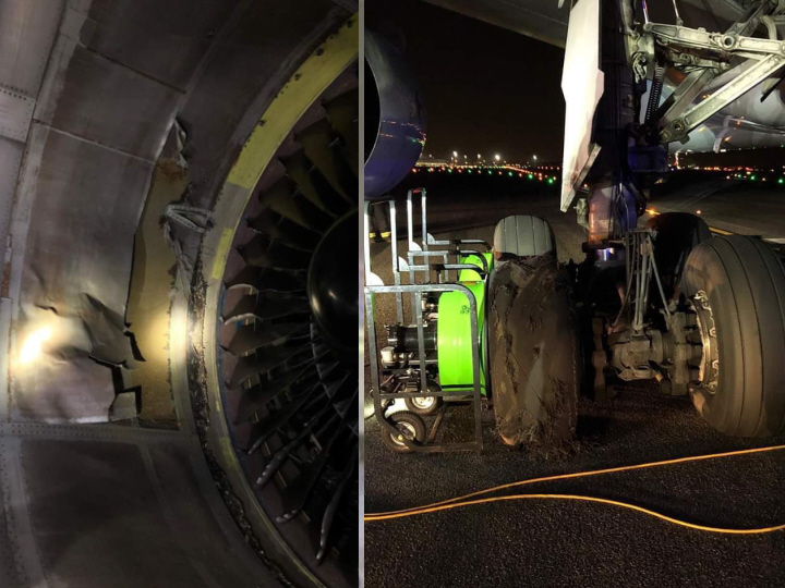 Et af dækkene på landingsudstyret eksploderede nemlig under takeoff og sendte fragmenter af dækket ind i den venstre motor i det to-motorede fly.