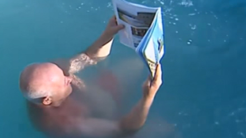 Med andre ord, det er stort set umuligt at drukne. Og han er bestemt noget af en opfinder - engang havde han Gadaffi i røret, men det vender vi tilbage til.