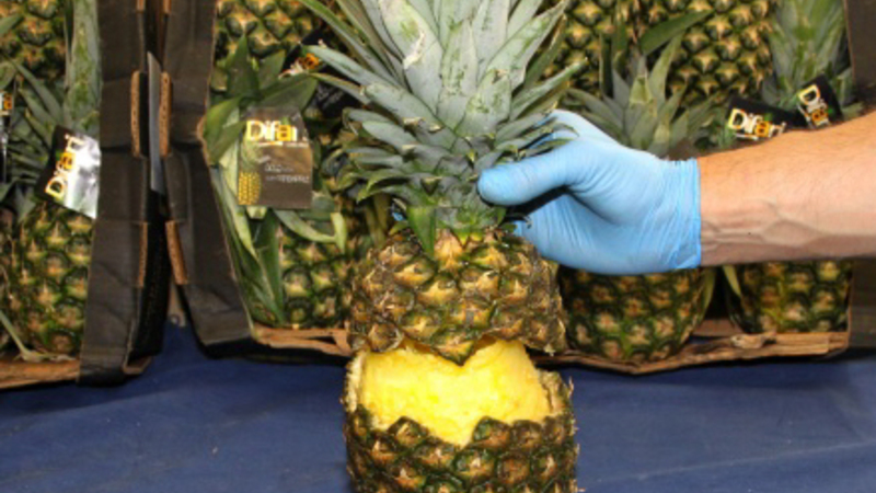 Policía National har konfiskeret 67 kilo kokain, der var skjult rigtigt godt i udhulede ananas.