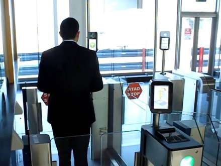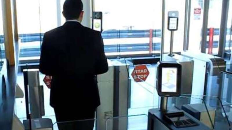Passagererne lukkes ind i en sluse, og tyve sekunder efter har et specialkamera sammenlignet alle deres ansigtstræk - uden briller og hatte - med deres pas eller NIE, der samtidig bliver aflæst i maskinen.