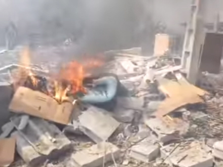 Hjælpemandskabet arbejder stadig i ruinerne sammen med brandmænd og civilforsvaret.