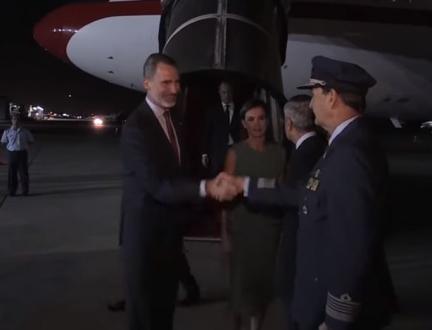 Airbus'en fra det spanske luftvåben var fløjet fra Madrid søndag middag og ankom kort før klokken 21 lokal tid i den såkaldte Aeroparque, der er hovedstadens gamle lufthavn, der ligger tæt på centrum.