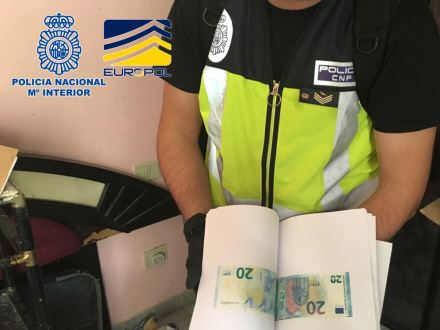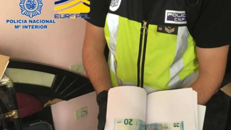 VIDEO: Politiet har trukket stikket på en flok udenlandske falskmøntnere, der havde slået sig ned på Tenerife, hvorfra deres maskiner sprøjtede pengesedlerne ud.