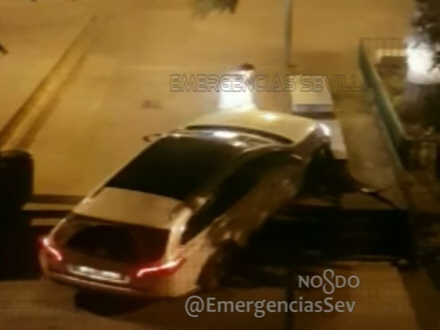 Politiet i Sevilla har anholdt en stjerneberuset bilist, der prøvede at køre op ad trapperne i et fodgængerområde.