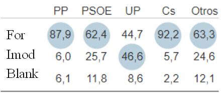 PP er overvejende for at beholde livstidsstraffen, mens Ciudadanos er næsten enstemmig. Socialdemokraterne tæller også et flertal, mens under halvdelen af Unidos Podemos stemte for her i starten af april