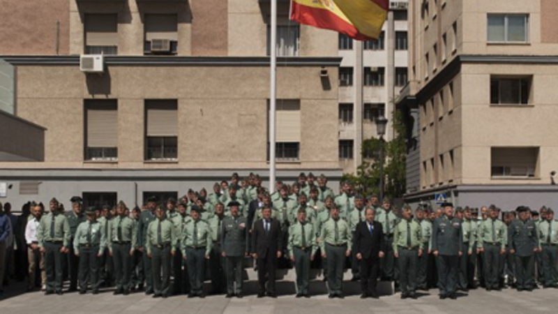 Sidst, men ikke mindst afholdt Guardia Civil et minuts stilhed for ofrene stående under et blafrende spansk flag, der naturligvis også var på halv.