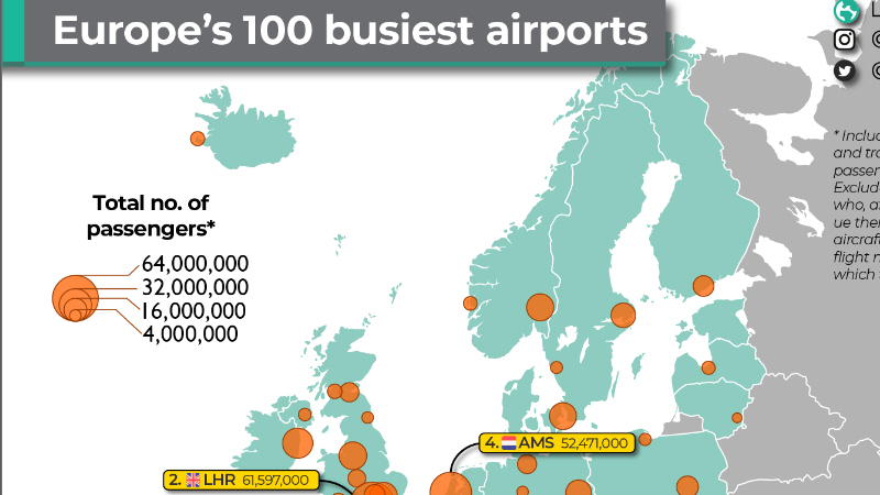 Hvor er de travleste passagerlufthavne i Europa?