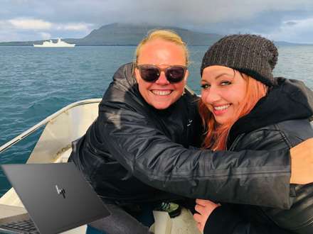Kathrine sammen med Gunn, der har designet Spanien i Dags hjertelogo og meget andet