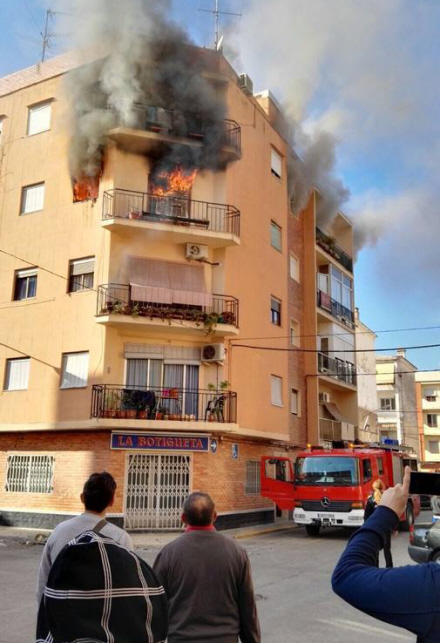 Søndag udbrød der brand på tredje sal i en bygning på fire etager på Calle Bonaire i Carcaixent, Valencia.