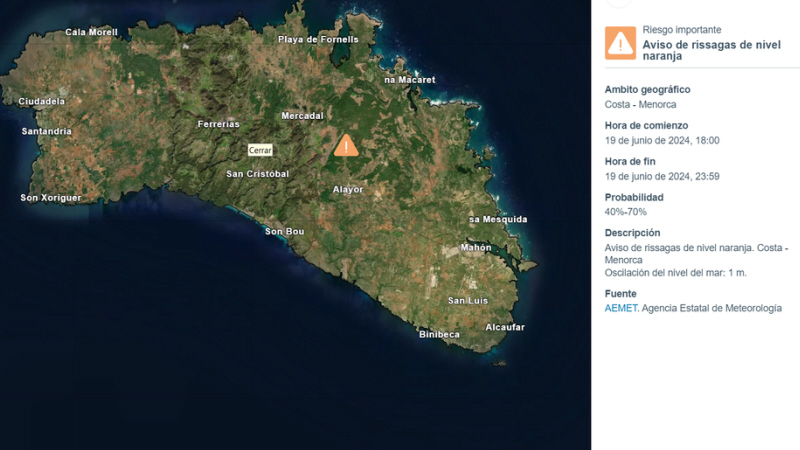 Den stærke vejrfront, der ankommer i dag fra Atlanterhavet, vil give store regnmængder til den østlige del af halvøen, men Meteorologisk Institut, Aemet, advarer om, at det også øger faren for såkaldte rissagas på Balearerne også kendt som meteo-tsunami.