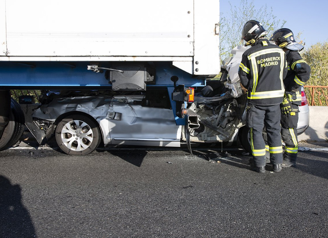 Stort set hele personbilen er inde under lastbilen her - føreren havde ikke en chance
