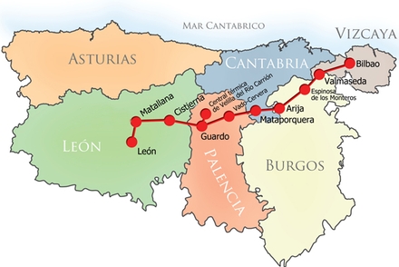 Togets rute fra León til Bilbao