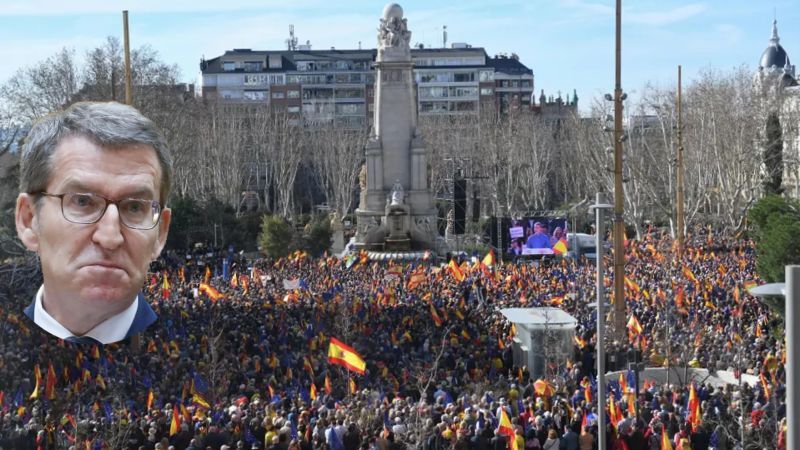 Oppositionsleder Alberto Núñez Feijóo har foran tusindvis af mennesker lovet at "redde landet på demokratisk vis". Klapsalverne fra deltagerne i PP's demonstration - mere end 70.000 ifølge PP og 45.000 ifølge regeringsdelegationen - rungede på den symbolske Plaza de España, som aftenen før amnestiloven skal godkendes i Kongressen, var fyldt med spanske og frem for alt europæiske flag - som en del af oppositionens strategi om at bede Bruxelles om hjælp.