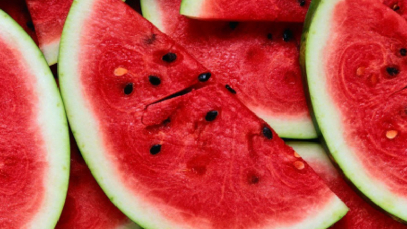 Nu er det jo sæson for bikini- og badebukser, og det er ikke for sent at arbejde lidt på strandformen. Og netop vandmelon er en meget fedtfattig frugt, der kun indeholder 30 kalorier per 100 gram.
