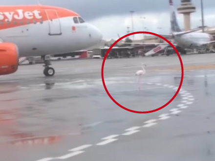 Et Easy Jet-fly, der på det tidspunkt var i gang med at manøvrere rundt på banen, blev tvunget til at bremse ned og køre i et helt roligt flamingo-tempo. Fuglen blev nemlig på ingen måde stresset, på trods af at den var omgivet af “jernfugle”, der jo både er meget større og stærkere.