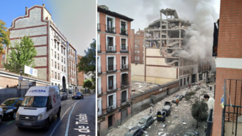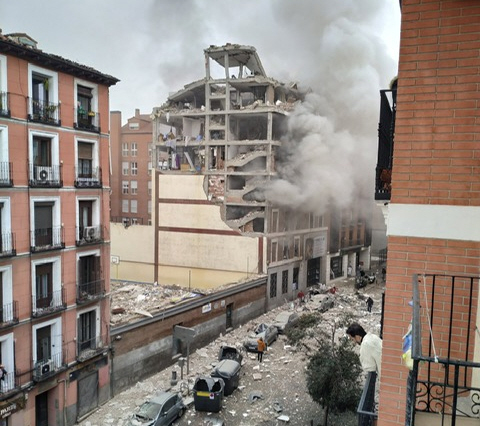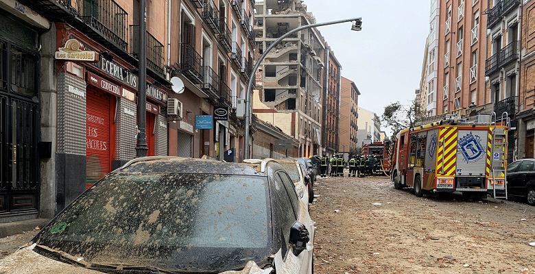 Voldsom eksplosion har mere eller mindre ødelagt de fire øverste etager og delvist ødelagt yderligere to af en ejendom i Madrid.
