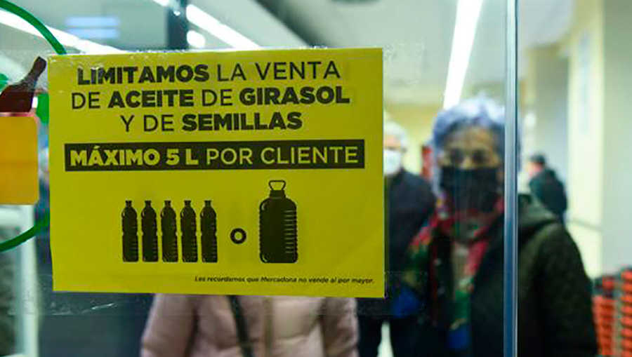 Forbrugerforeningen FACUA kritiserer i stærke vendinger fem supermarkedskæder for at begrænse kundernes køb af solsikkeolie.
