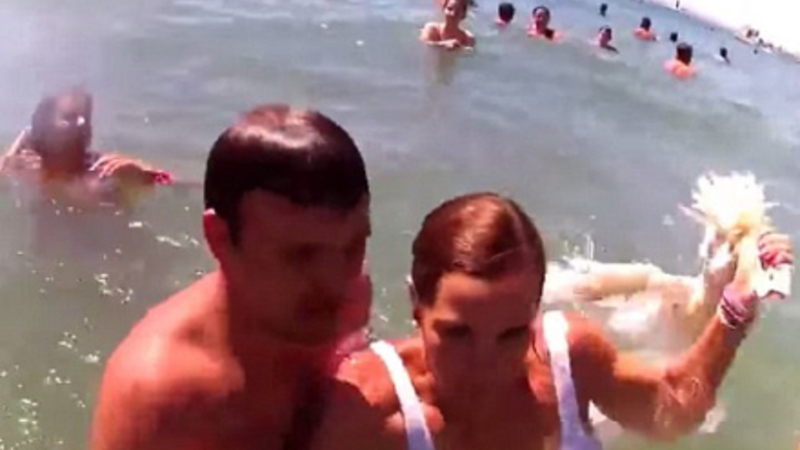 Ænderne kastes i havet fra både og jagtes derefter af badegæster, der får en præmie, når de kommer i land med dyret.