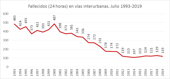 Dødstallet på 119 ofre i juli er et fald på 10 stigning fra 2018, og bliver historisk kun overgået af 2013 og 2014 med henholdsvis 113 og 107 ofre.