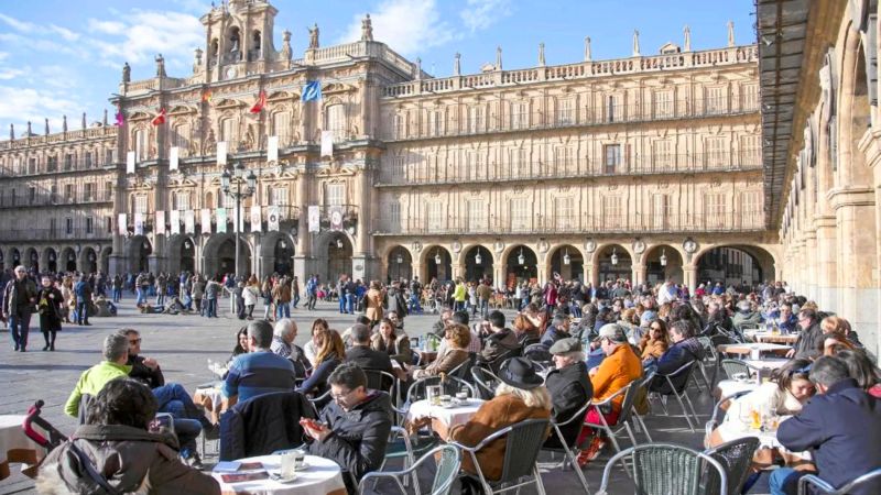 Om dagen imponerer den med sin gyldne farve og harmoniske arkitektur. Om aftenen kommer den til live, når salamanquinos og besøgende samles på caféerne og i samtaler under den fortryllende belysning. Det er sjælen i byen.