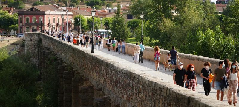 Catedral Nueva og Catedral Vieja (Den nye og den gamle katedral), Casa de las Conchas (et palads med facade dækket af muslingeskaller) og en tur over Romanske bro (Puente Romano) ved solnedgang.