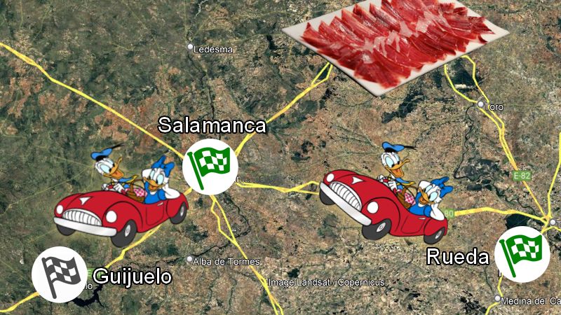 Ruten, som rytterne kørte er på 108 km.og varer knap to timer. Hvis du vil hurtigst muligt til Salamanca, kan du vælge den direkte rute, der er på 87 km. og varer knap én time.
